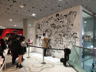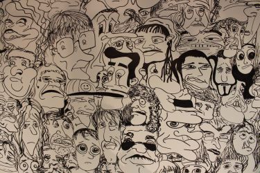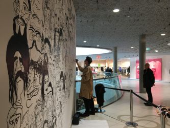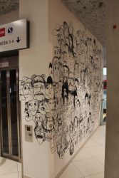Das Kunstwerk entstand innerhalb von 3 Tagen vor Ort und wurde von interessiertem Publikum begleitet. So manche Personen könnten sich auch auf der Wand wiederfinden. Und eventuell auch…ein Hund…denn auf der Beschreibung zum Kunstwerk ist zu lesen: