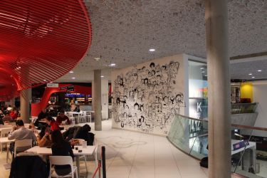 Die KUNSTWAND im Foodcourt von WIEN MITTE The Mall wurde 2015 installiert, um Kunststudierenden die Möglichkeit zu bieten, Ihre Arbeiten einem breiten Publikum näherzubringen (Tagesfrequenz durchschn. 50.000 Personen täglich) und Erfahrungen im öffentlichen Raum zu sammeln.